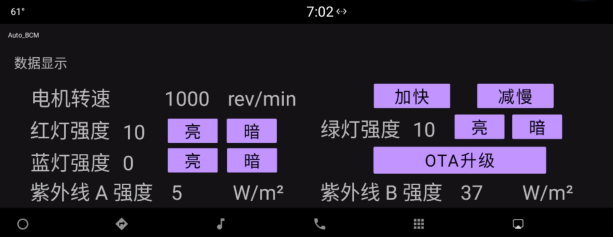 - Supports continuous transmission of sensor data from the MCU to the central control, displaying it on the UI;