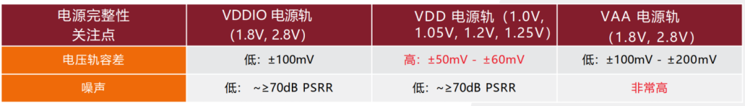 VDDIO(I/O电源轨) :容差通常为±100 mV, 裕量相对宽松;
