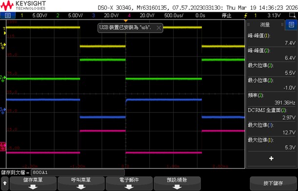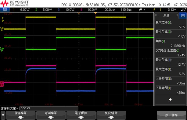 CH1-黃PWN-H CH2-綠PWM-L CH3-藍Driver-H CH4-粉Driver-L